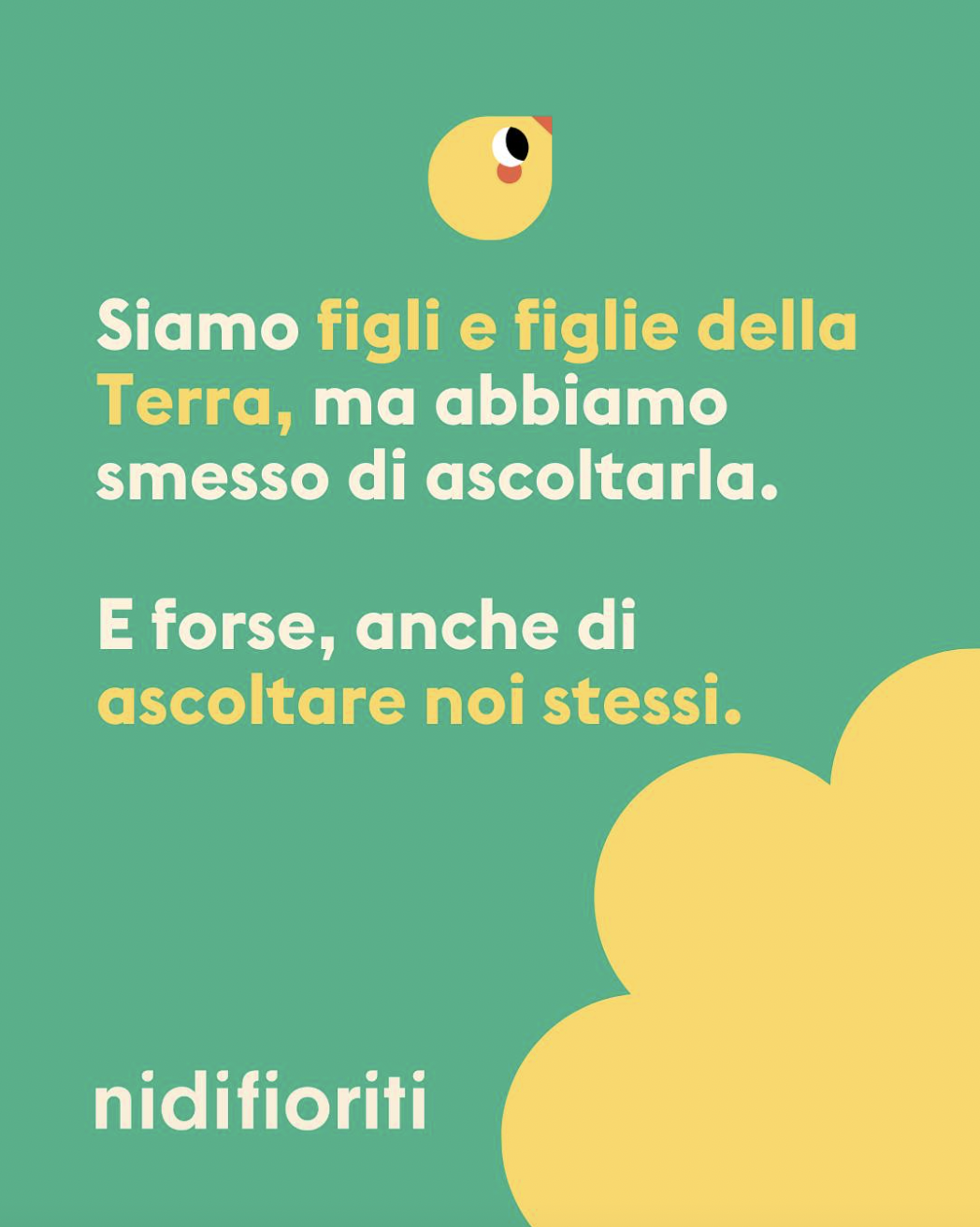 Abbiamo dato forma e voce a un’identità parallela: quella del Festival di Nidi Fioriti. Una brand identity specifica per il Festival, coerente ma autonoma, pensata per comunicare la dimensione più esperienziale e culturale del progetto. Logo dedicato, elementi visivi originali, materiali stampa e digitali, e una nuova direzione grafica per il profilo Instagram, per raccontarne l’anima con leggerezza e riconoscibilità.